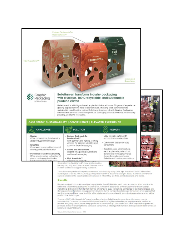BelleHarvest是密歇根州manzanas的分销商más de 50 años de experiencia en llevar manzanas del campo和los anaqueles。通过alimentación saludable, BelleHarvest se asoció con Graphic Packaging International通过全新的包装设计,将产品设计成可再生的,100%可欧宝娱乐登录下载回收的。